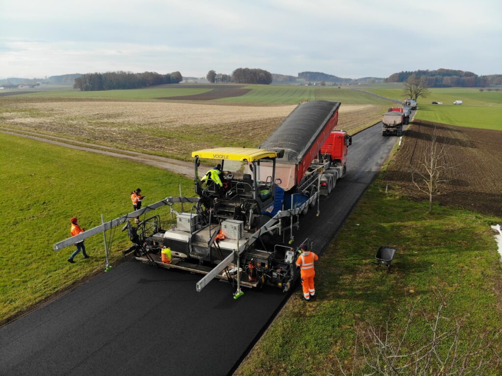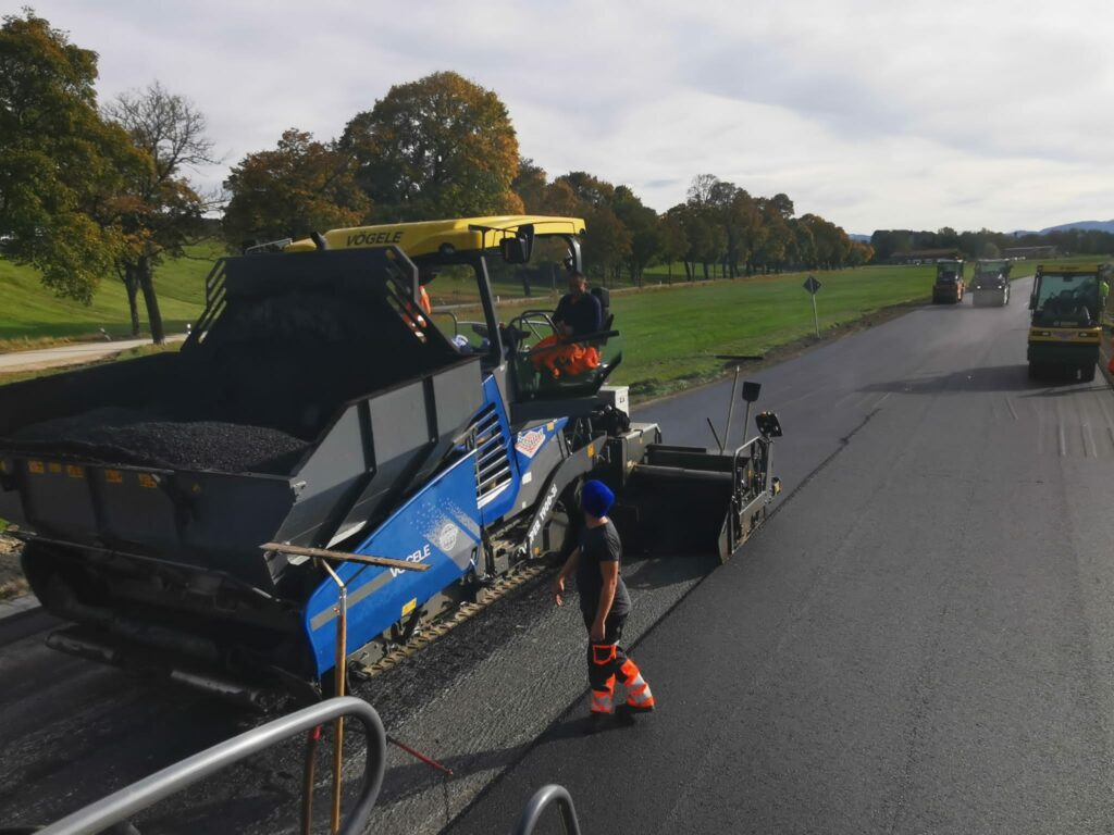 Wir verfügen über eine große Bandbreite an Maschinen aus dem Bereich der Straßenbautechnologie. Fertiger, Walzen und das Flaggschiff, ein Vögele Beschicker, wickeln jedes Tiefbau Projekt von Erdbau und Kanalbau bis Straßen- und Asphaltbau.