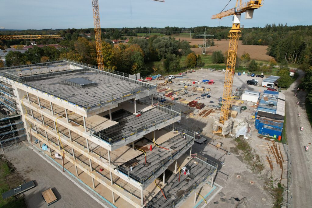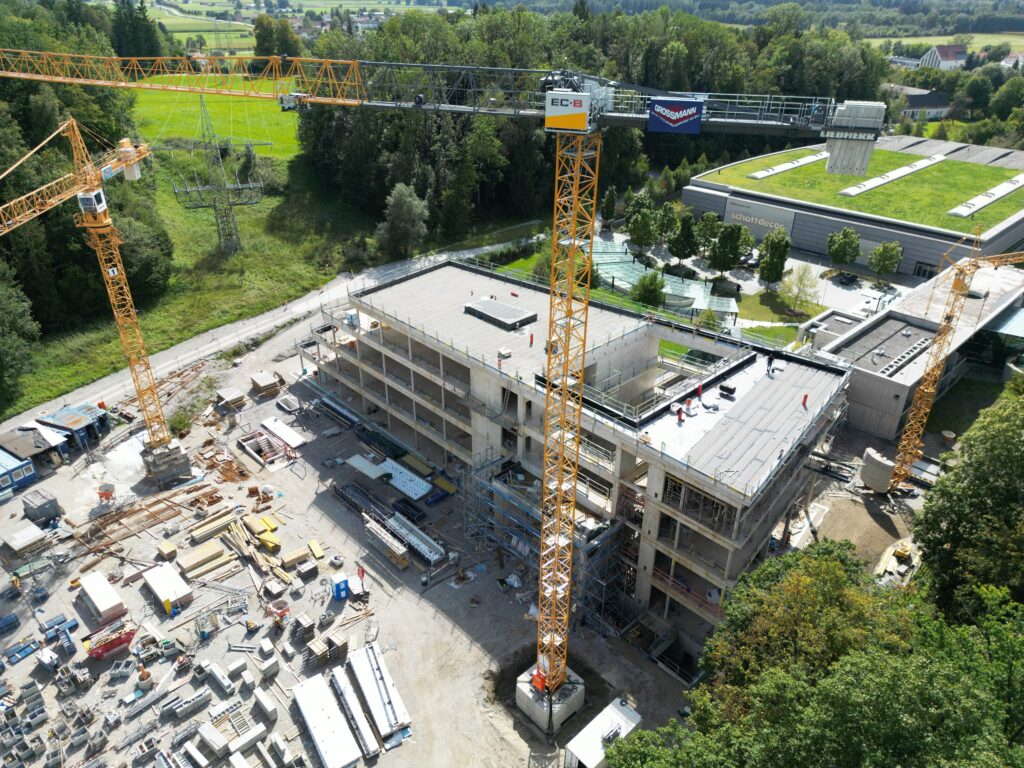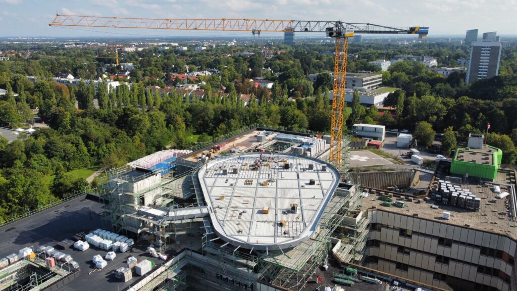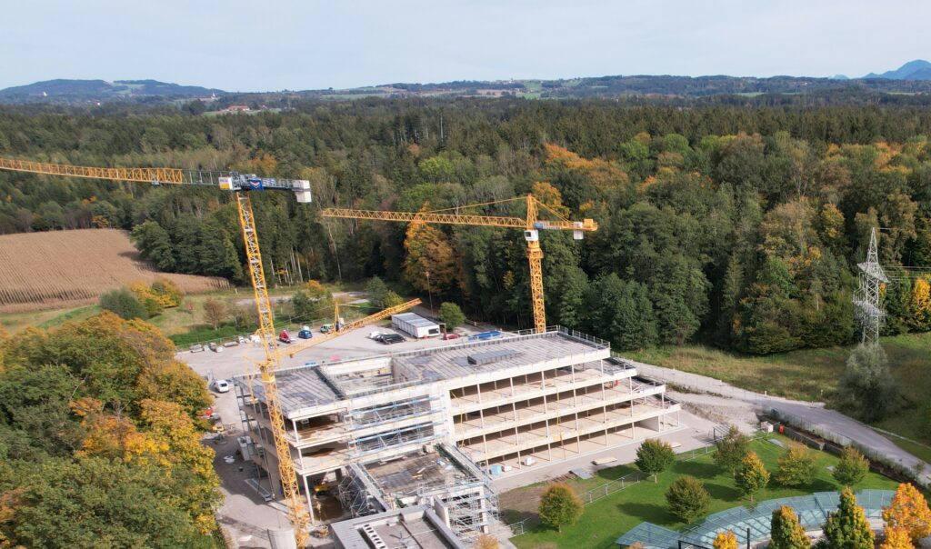 Der neue Turmdreher Kran 340 EC – B12 von Firma Liebherr verstärkt unsere Kranflotte. Das neue Flaggschiff mit einer maximalen Tragkraft von 12.000 kg ist zurzeit auf der Baustelle Erweiterungsbau Klinik Bogenhausen im Einsatz.