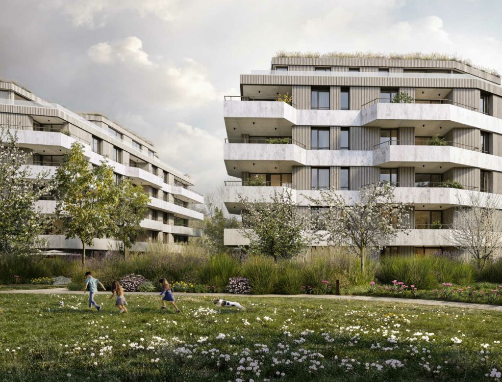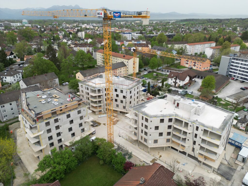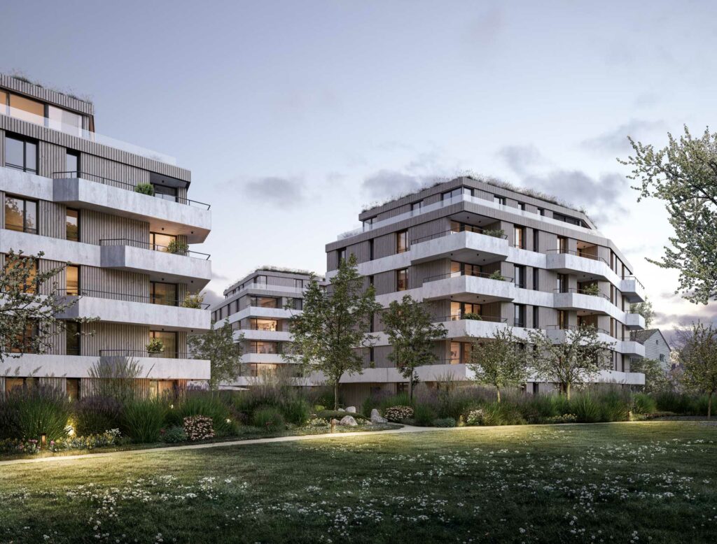 Mitten im westlichen Stadtbereich von Rosenheim entsteht auf der Fläche einer ehemaligen Streuobstwiese ein Ensemble aus drei Häusern mit 8.300 m² hochwertigen Wohnfläche.