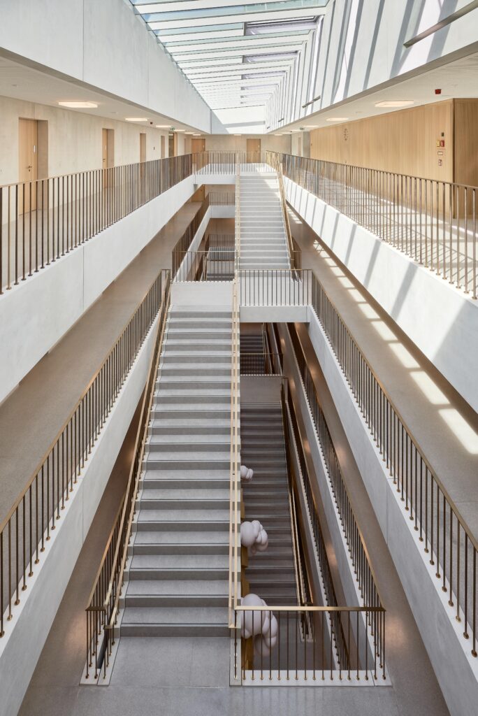 Hauptaugenmerk der Architektur liegt auf den über alle Geschosse angeordneten Sichtbetonwänden (Treppenhaus- und Flurwände) in der Qualitätsstufe SB3.